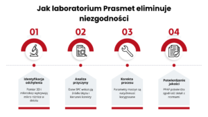 Każda linia produkcyjna musi działać w sposób stabilny, a jeśli pojawia się problem – trzeba go rozwiązać tu i teraz. Prasmet wypracował procedury, które pozwalają natychmiast diagnozować przyczynę awarii i wdrażać działania naprawcze. To nie tylko skraca czas reakcji, ale także chroni przed konsekwencjami w postaci reklamacji czy spadku jakości detali.